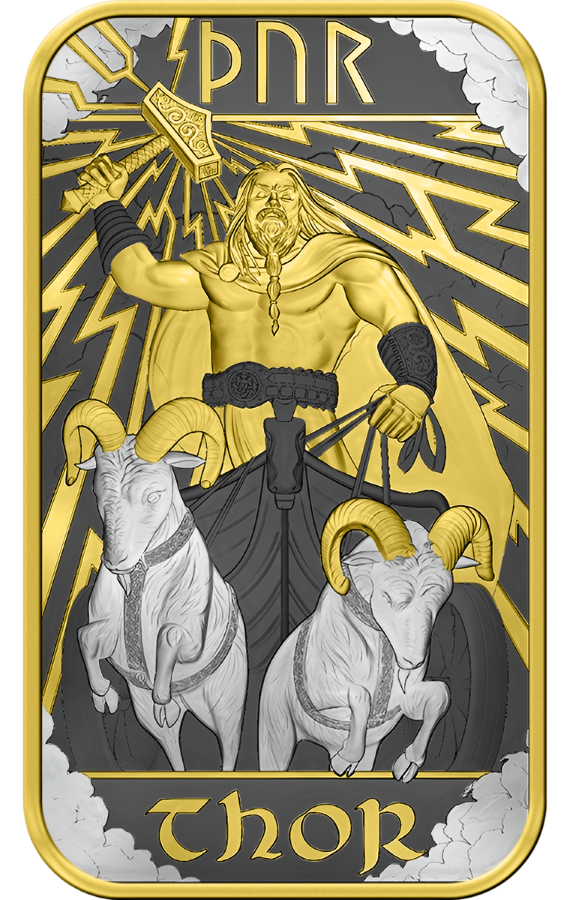 As the mighty god of thunder and protector of Asgard, Thor embodies strength, courage, and unwavering honor. The innovative multi metal design showcases Thor's commanding presence, with contrasting metals highlighting intricate details of Mjölnir, his legendary hammer, and the storm clouds that herald his arrival. Each bar is a testament to Germania Mint's exceptional craftsmanship and artistic vision.