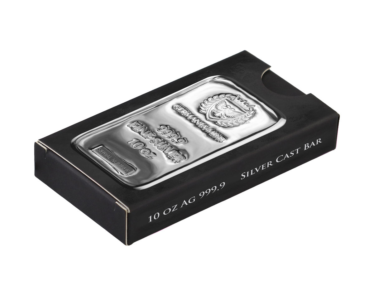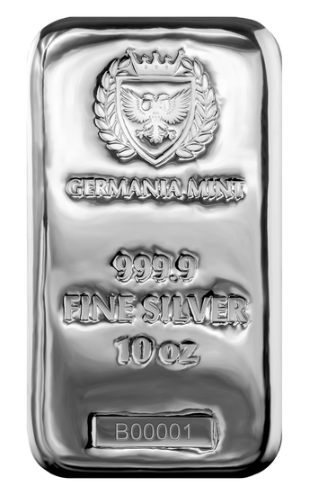10 troy ounce zilveren baar, Germania Mint