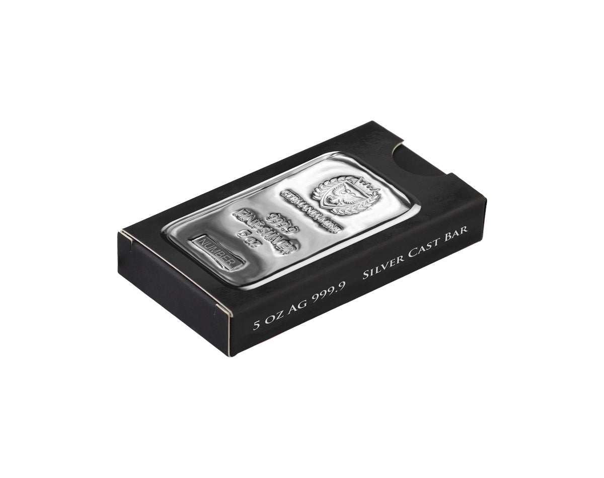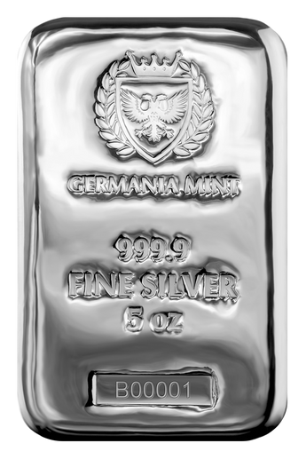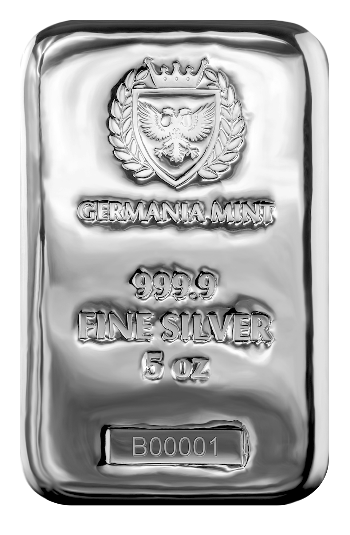 Vijf troy ounces pure precisie — waar vakmanschap tastbare waarde ontmoet. De Germania Mint 5 oz Silver Bar belichaamt verfijnd gewicht, tijdloos ontwerp en het karakteristieke uiterlijk van handgegoten zilver.