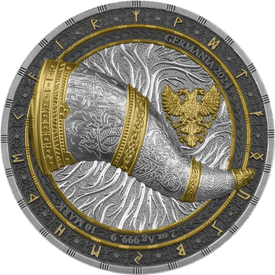 De 2024 Gjallarhorn 2 oz Zilver Ultra Hoog Reliëf Munt is het debuut van de Artefacts serie, die legendarische objecten uit mythologie en geschiedenis viert. Geslagen uit 62,2 g van .999 fijn zilver door Germania Mint, brengt deze munt de legendarische Gjallarhorn uit de Noorse mythologie tot leven in verbluffend driedimensionaal detail.